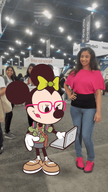 The HeroMirror AR experience, created for Disney, allowed fans to interact and pose for photos with well-known Disney characters at GHC 18, a three-day celebration designed to bring together women in computing to discuss research and career interests.